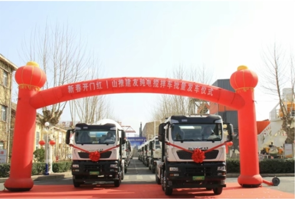 今年开工首日,多台山推纯电搅拌车整齐列队,从厂区驶出,奔赴华北市场。该车型深度融合中国重汽HOWO底盘与山推核心上装技术,兼具环保高效、安全可靠等优势。整车防水等级达IP6K9K,充电40分钟续航超200公里,可满足城市高频运输需求。上装采用980MPa高强钢,结合全自动下料成型与机器人焊接工艺,搭载专利内部结构,确保装料更均匀、卸料更彻底,以硬核品质助力绿色低碳施工。