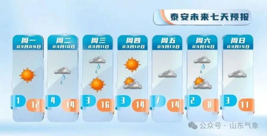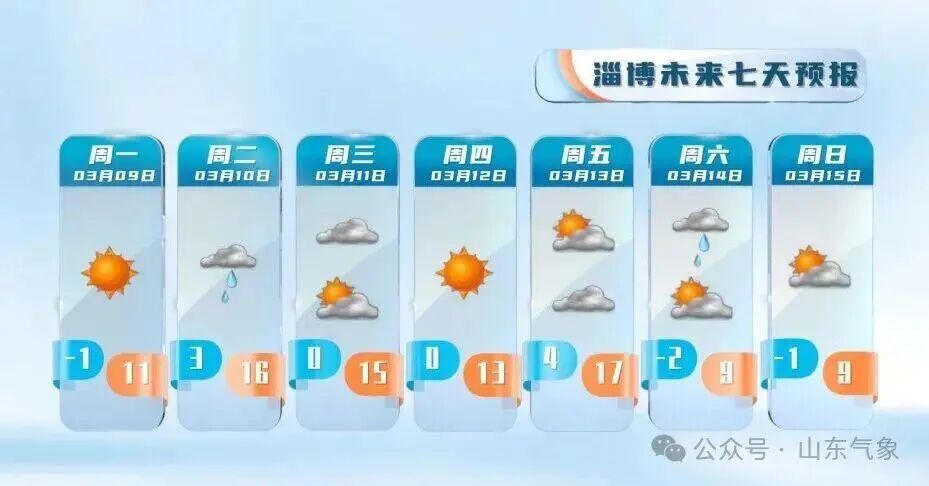 11日白天到夜间,鲁中山区和半岛地区天气阴局部有小雨转多云,其他地区天气多云转晴。鲁西北和鲁南地区北风3~4级,其他地区南风转北风3~4级。