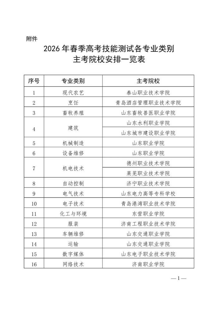 记者从济南市教育招生考试院获悉,山东省2026年春季高考技能测试于3月14日(明天)至24日进行。需要注意,春季高考技能测试考生只能从30个类别中选择1个,只能测试1次。