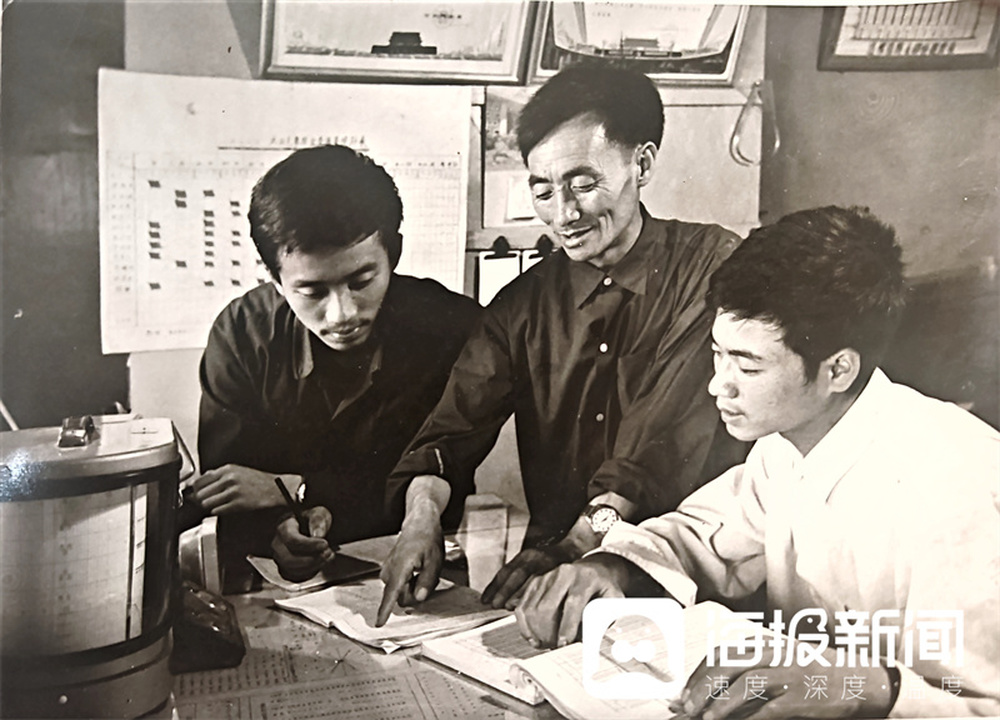 侯振西(中)和同事探讨工作。(资料片)