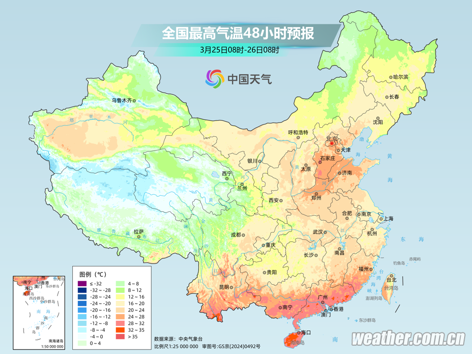 未来三天北方多地气温将冲高,25日前后达到近期高点,华北、黄淮以及辽宁部分地区,最高气温可达20℃以上,河北南部、河南北部、山东西北部将超过25℃,大面积创出今年来新高,暖如常年4月下旬甚至5月上旬。