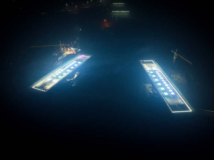 据了解,两段桥重量都达到了1.86万吨,为了保证安全平稳转体,项目方构建了基于BIM与数字孪生技术的转体智能监控平台。