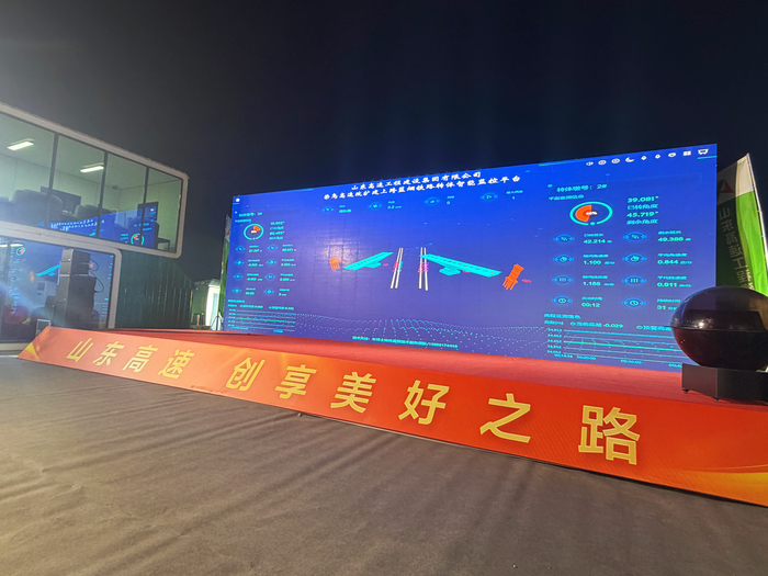 山东高速烟蓬公路有限公司副总经理滕建军介绍,监控平台可以实时显示转体的气象信息,如风速、风向,也可以动态展示梁体的姿态和标高的变化,还可以实时监测转体的关键参数,如线速度、角速度等变化。同时,引入AI语音智能播报技术,科技赋能,达到“转得动、转得稳、转得准”的预期目标。