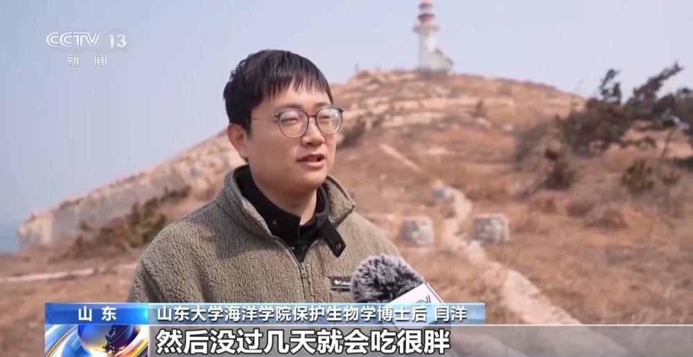 山东大学海洋学院保护生物学博士后 闫洋:长岛这边的斑海豹比较胖,因为这里渔业资源丰富。可以很明显感觉到斑海豹刚来的时候比较瘦,没过几天就会吃得很胖。