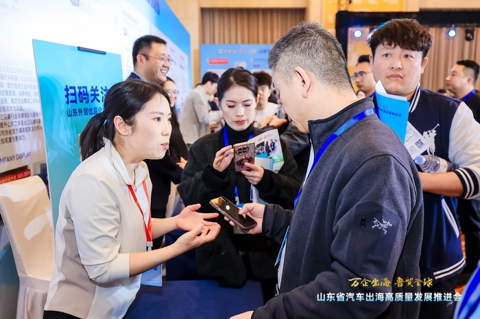 精准对接洽谈环节,济南、青岛、淄博、潍坊等市与国内知名汽车集团总部开展“一对一”洽谈。同时,省内贸易、物流、金融、报关等出口供应链服务企业设立对接推介专区,面向汽车及配套企业提供涵盖融资、物流、通关、展会等领域的精准服务,现场交流氛围热烈,达成一批合作意向。