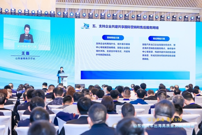 4月2日,“万企出海 鲁贸全球”全省汽车出海高质量发展推进会在济南举办。活动由山东省商务厅主办,聚焦提升全省汽车产业国际竞争力,进一步搭建完善我省汽车出海协同发展平台,助力山东汽车产业扬帆出海、行稳致远,吸引了重点金融机构、出口信用保险机构、汽车相关商协会以及重点汽车整车及零部件生产、贸易、服务企业代表共300余名嘉宾到场参会。