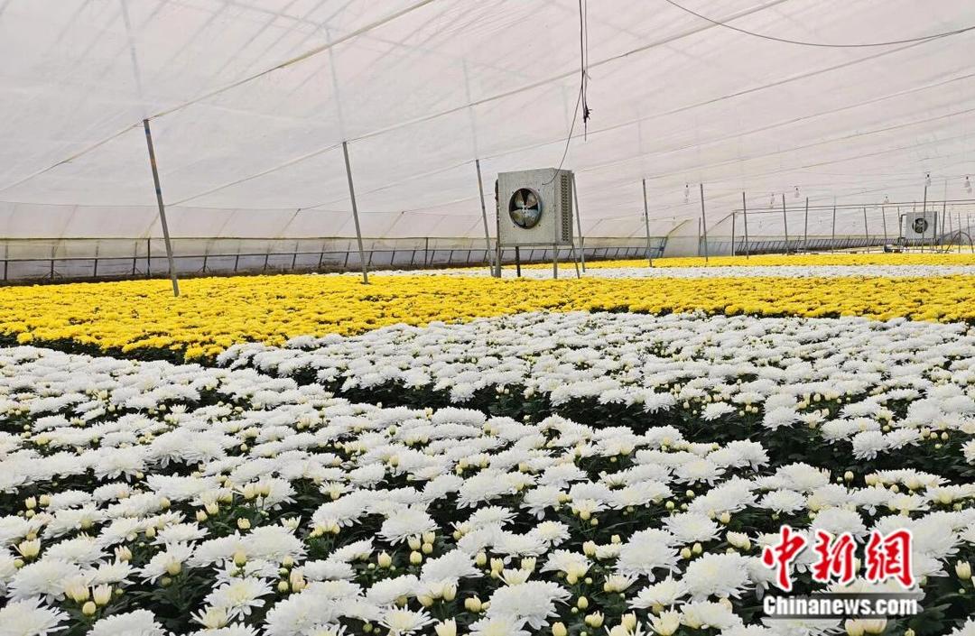 在青州乡间大棚里,成片菊花灿烂绽放,黄如碎金铺展,白似雪落满地。花农穿梭于花径间,将一盆盆鲜菊打包、装车,运往全国各地。