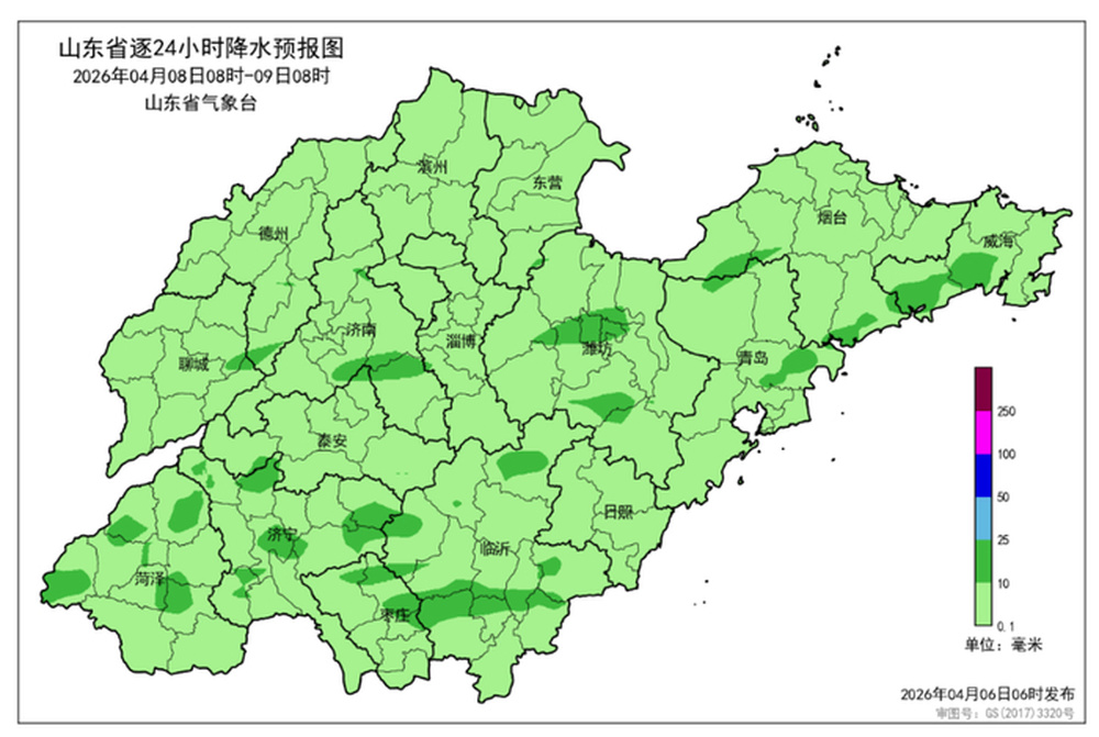8日白天到夜间,全省天气多云转阴,鲁南、鲁中和半岛地区有小雨局部中雨并伴有雷电,其他地区局部有小雨。半岛地区南风5~6级阵风7级转偏东风4~5级阵风6~7级,其他地区南风4~5级阵风6~7级转北风3~4级,雷雨地区雷雨时阵风8~10级。夜间最低气温:鲁中山区和半岛地区9℃左右,其他地区11℃左右。最高气温:滨州、东营、济宁、枣庄、临沂和鲁中地区21℃左右,南部沿海地区15℃左右,其他地区19℃左右。