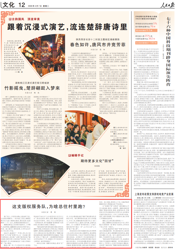 “版权是保护原创的法律工具,也是驱动传统手艺创新的关键要素。我们要让版权扎根乡土、守护匠心,让老手艺活起来、潮起来,迈向更广阔的市场。”栖霞市新闻出版局局长蒋言芳说。《人民日报》(2026年4月7日 12版)