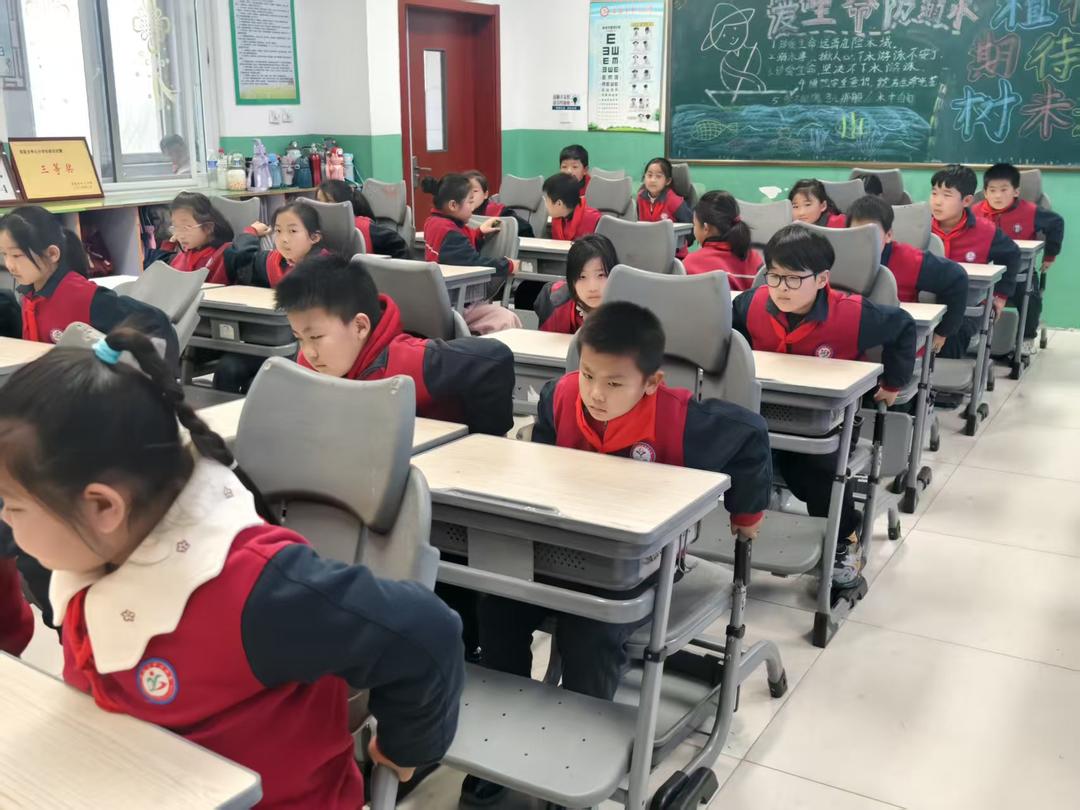 自2022年起,乐陵市就把改善中小学生午休条件当成重点民生实事推进,先行在3所城乡学校开展试点,根据师生反馈不断优化方案后,逐步在全市推开。截至目前,全市已为186个班级配齐10416套午休课桌椅。