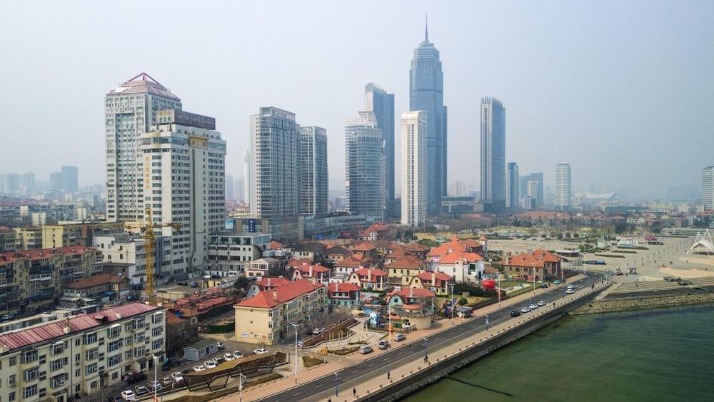 烟台市城区(无人机照片)。新华社记者 徐速绘 摄
