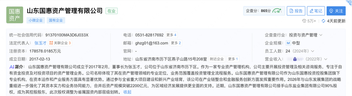 作为此次股权受让方的山东国惠资产管理有限公司,成立于2017年,注册资本178578.02万元,法定代表人为张玉才。公司主要从事不良资产处置、自有资金投资管理及股权投资受托业务,并开展企业并购重组咨询、自有物业租赁等配套服务,是山东发展集团的全资子公司。