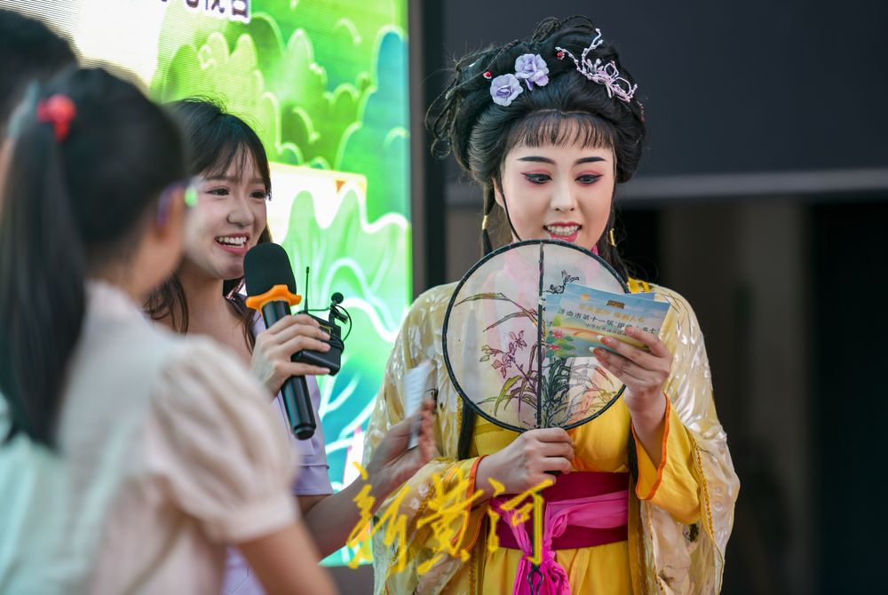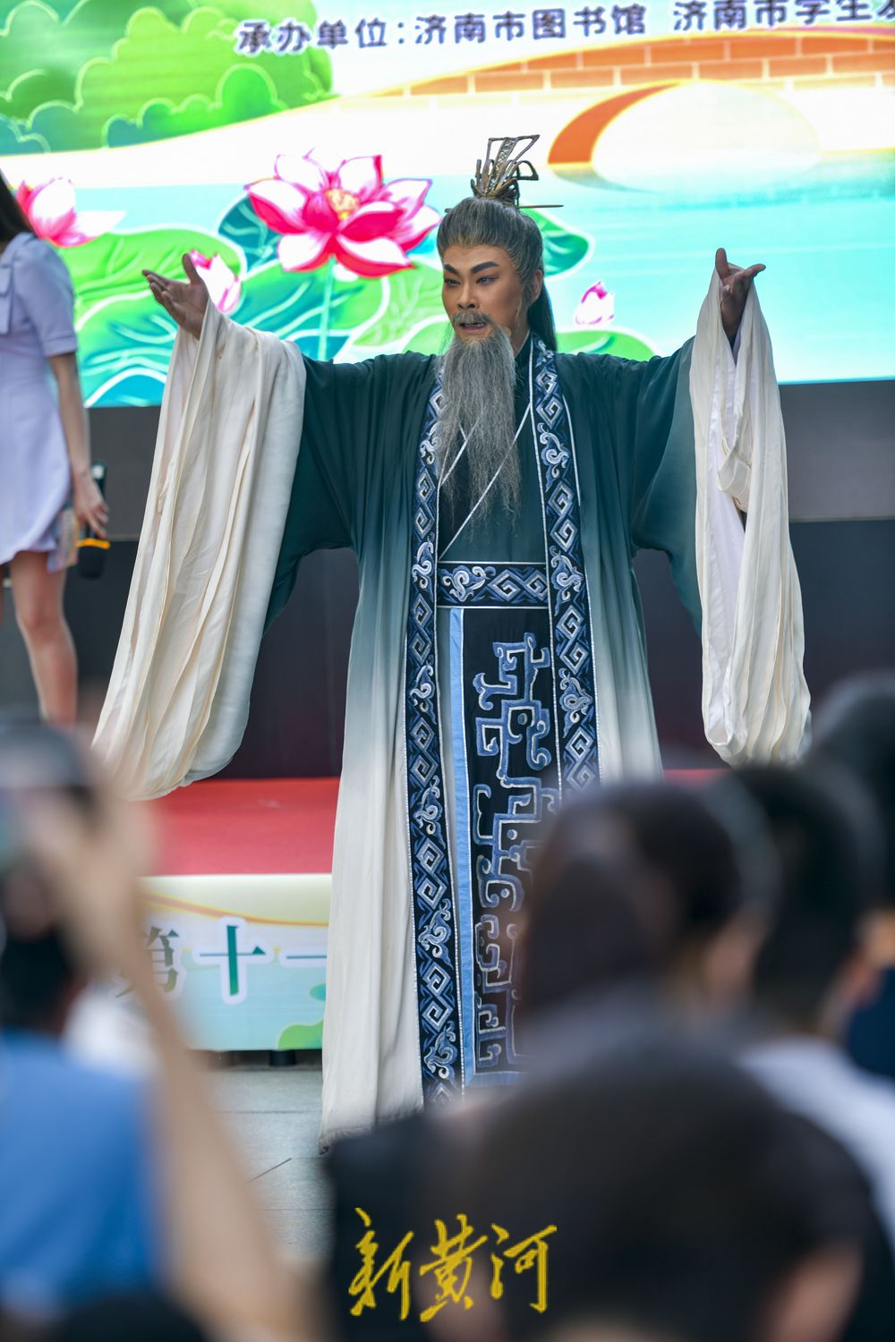 济南京剧院的演员们还扮演易安居士李清照和幼安居士辛弃疾,演唱名曲名段,为参与诗词作答的孩子们做考官, 与先贤跨越时空交流, 领略传统文化的无限魅力。
