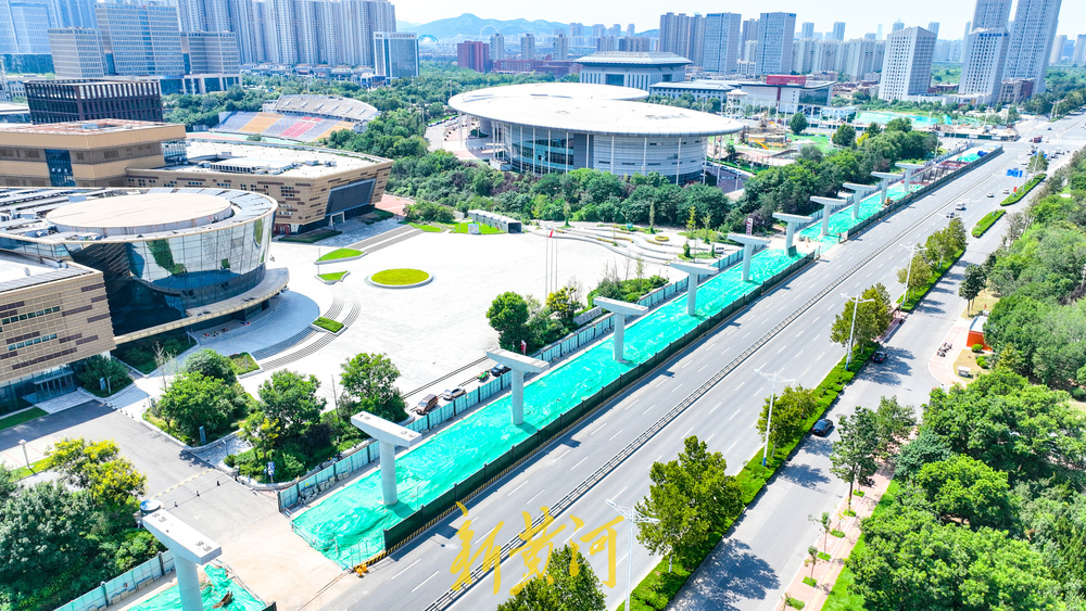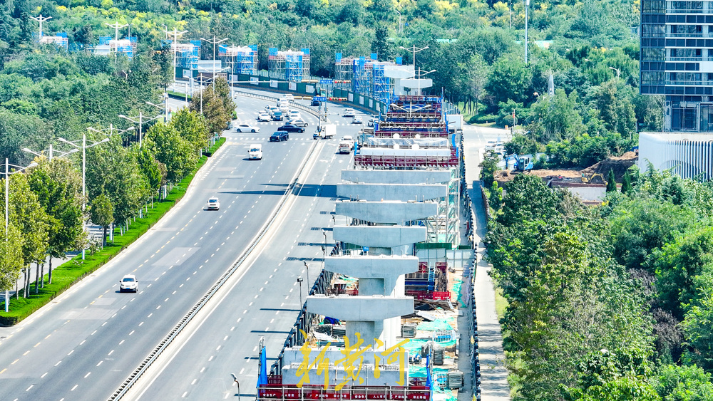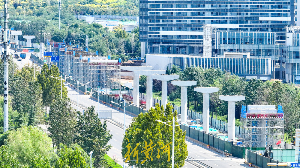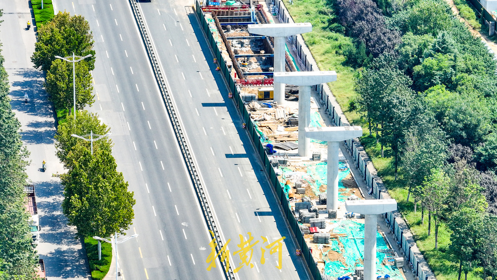 9月4日,记者在济南历城文博中心北侧的世纪大道看到,数十个高架墩柱和承台已经浇筑完成,沿着世纪大道向东延伸, 下一步将进行高架轨道的梁架施工。
