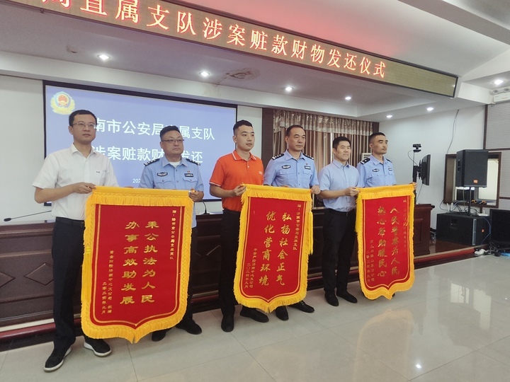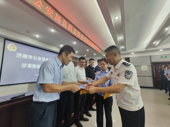 9月25日,为深入推进“夏季行动”破案攻坚,展示夏季治安打击整治行动成果,济南市公安局直属支队举行王某辉、王某金诈骗案涉案赃款财物发还仪式:不仅杨师傅等车主赶到现场,12家保险公司负责人也悉数出席。