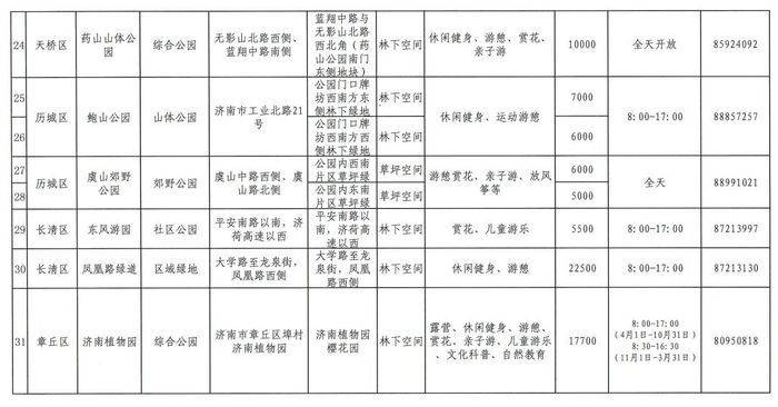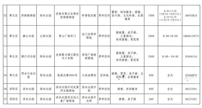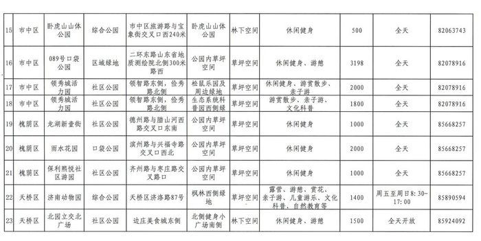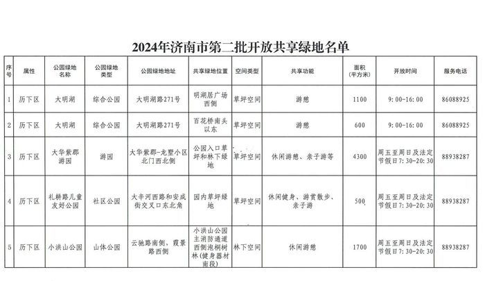 2024年济南市第二批开放共享绿地名单