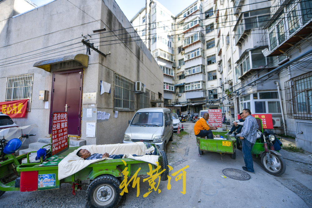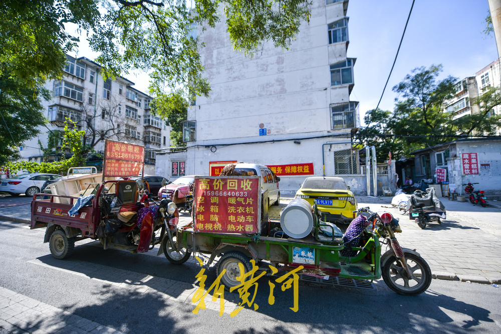 征收的小区内悬挂起了签约宣传条幅,众多搬家公司、房产中介和收废品的商贩闻风而动,进入小区内寻找商机。