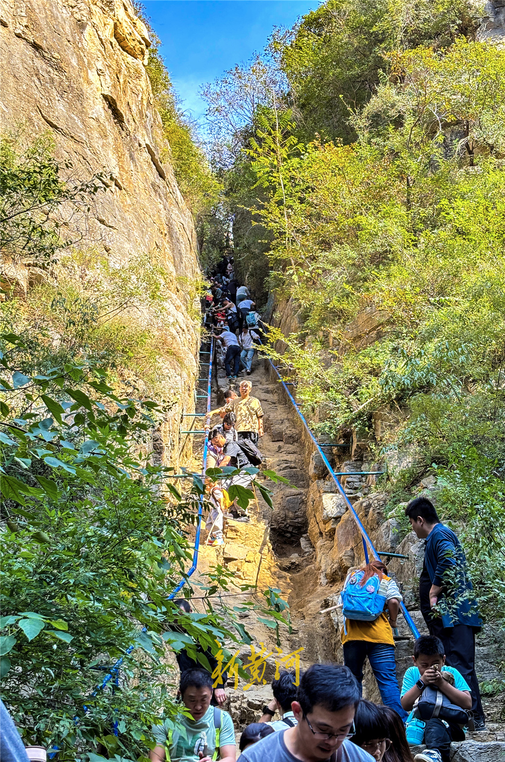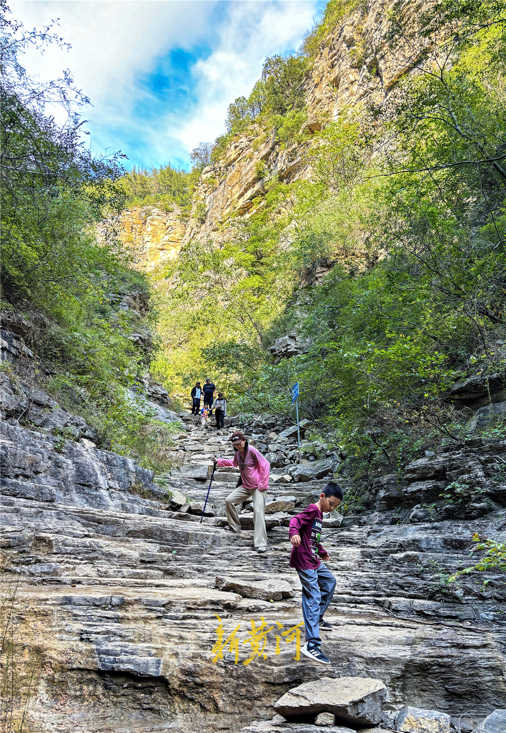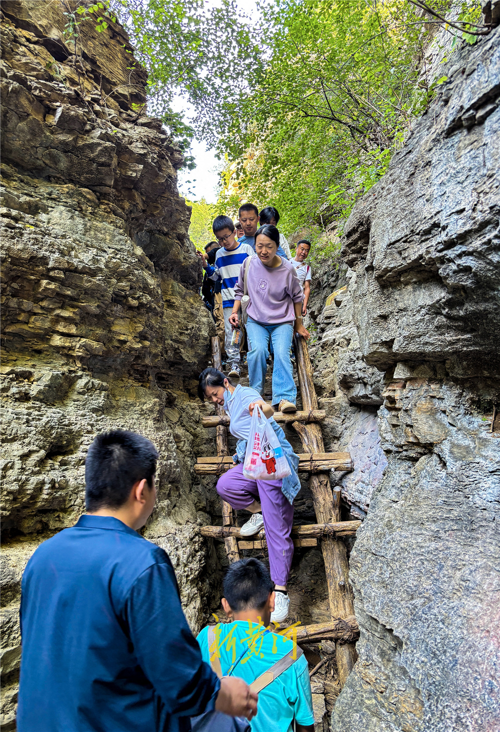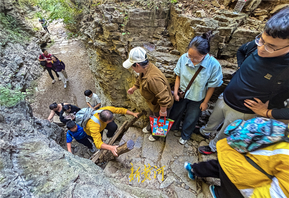 在景区核心区的藏龙涧,山路崎岖不平,两侧是直立陡峭的悬崖峭壁,是市区里独特的喀斯特地貌。尤其在“一线天”景观处,两侧悬崖如刀劈,壁立千仞,是众多游客进山必打卡点。