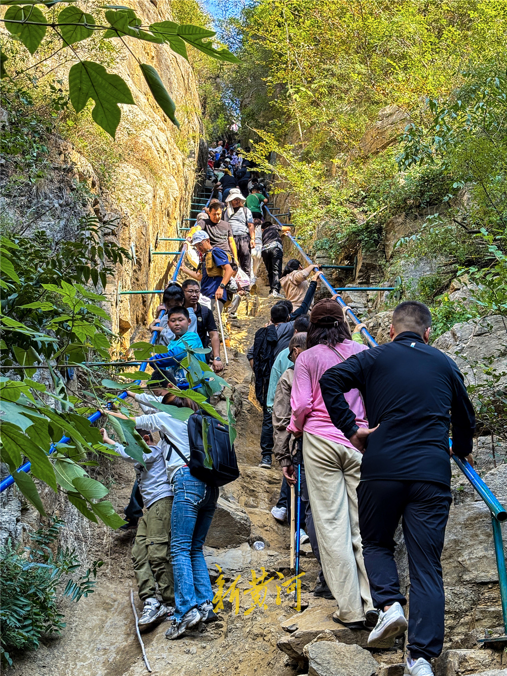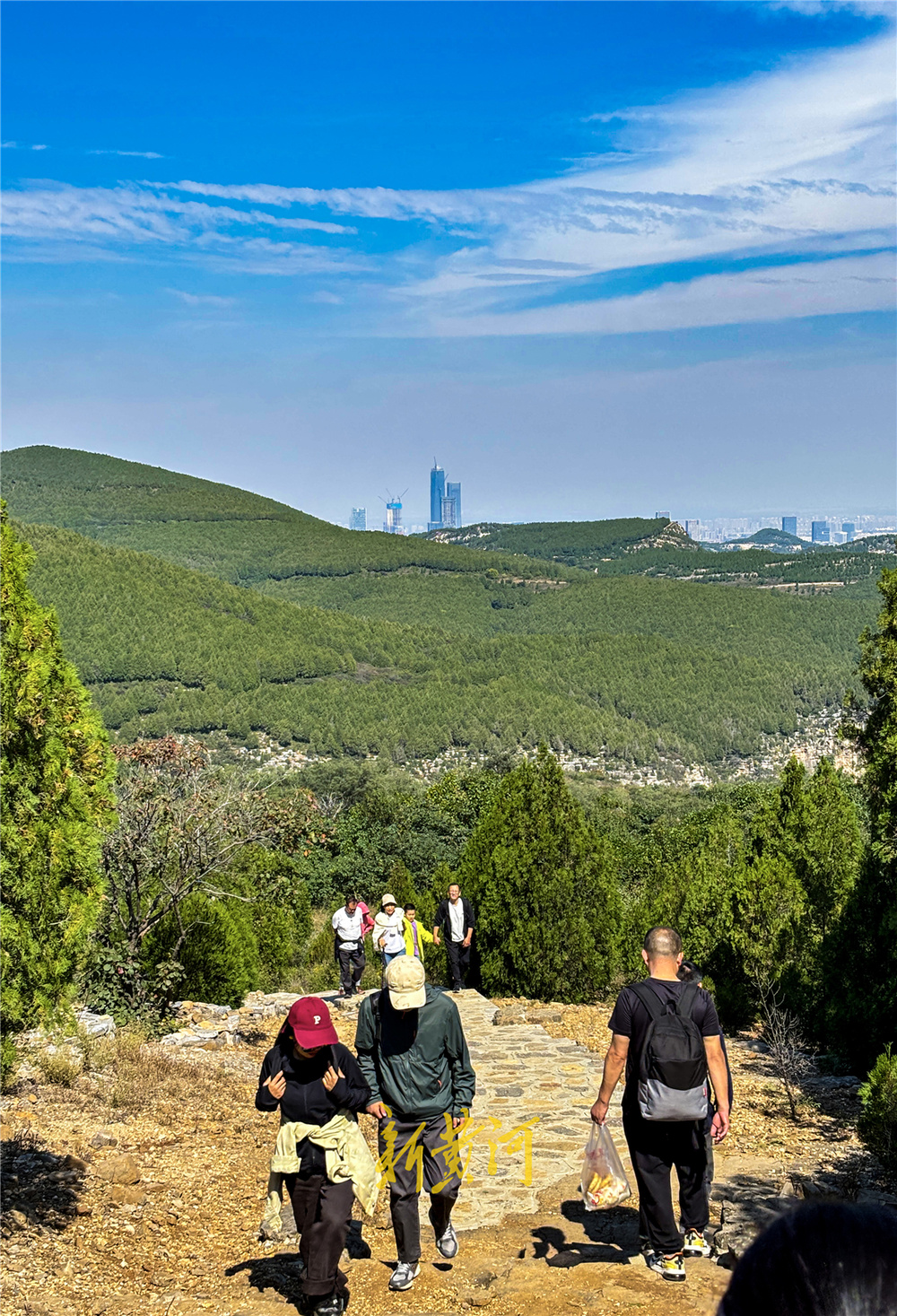 10月5日,国庆假期众多市民纷纷开启野外登山游,在济南龙鼎大道南首的龙洞风景区,这里山清水秀林壑优美, 连绵起伏的山峰,草木遍布整座山区,满眼皆是绿色。