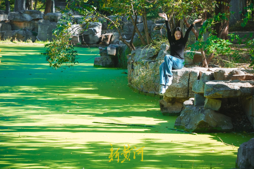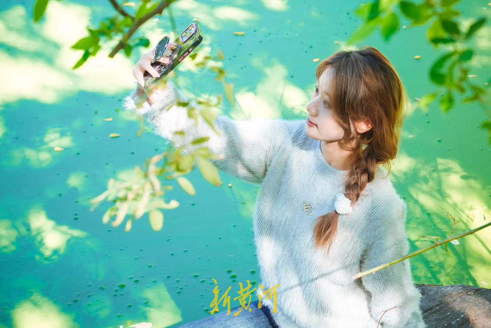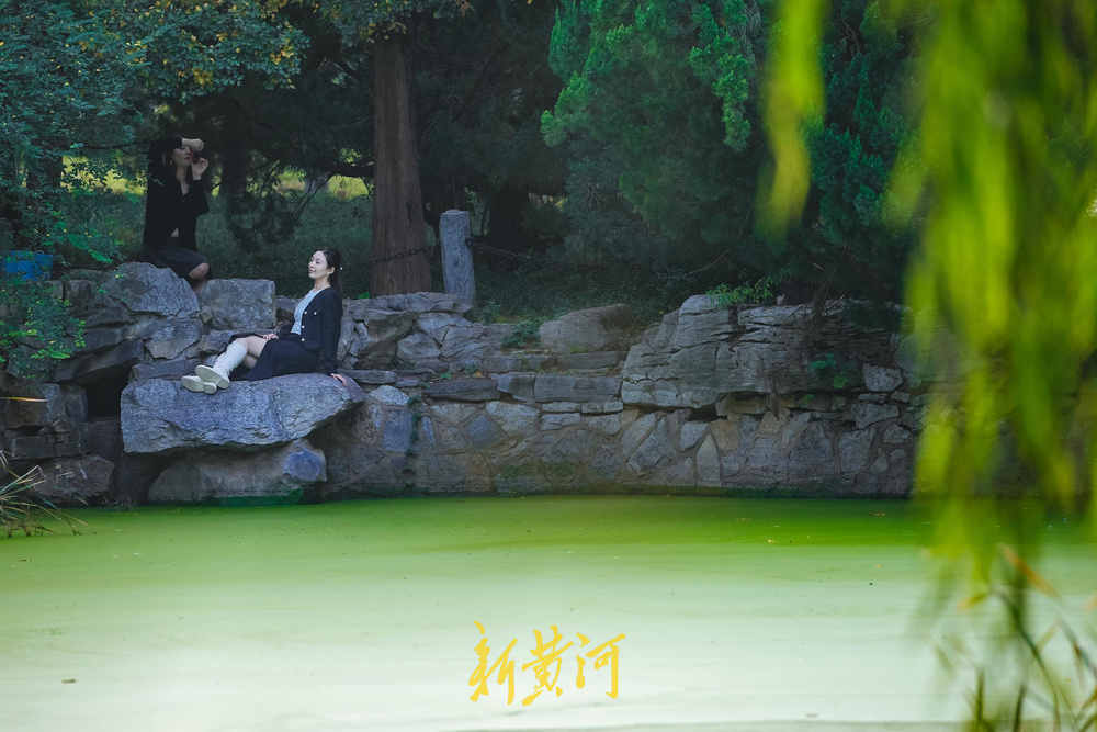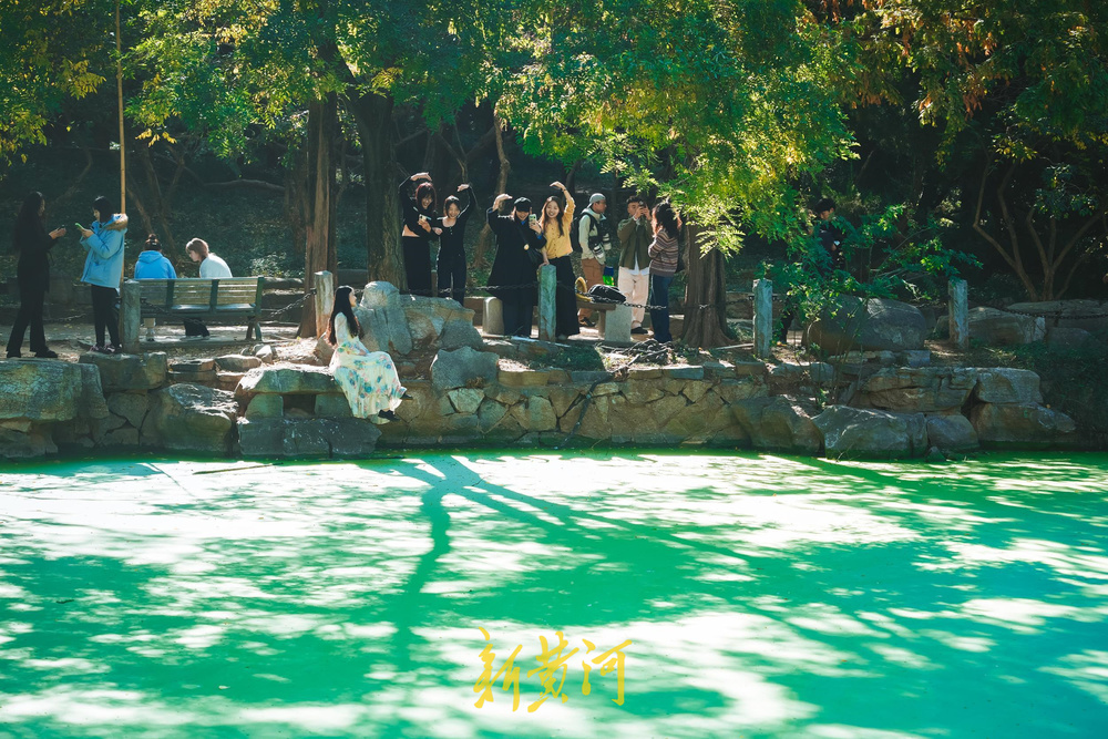 11月2日,位于济南泉城公园内中央区域的“抹茶湖”受到众多年轻人的热捧,秋日的阳光穿过树枝,映射在绿色的湖面上,好似一幅幅大自然的画作,不少游客慕名到此打卡拍照,留下美丽的瞬间。