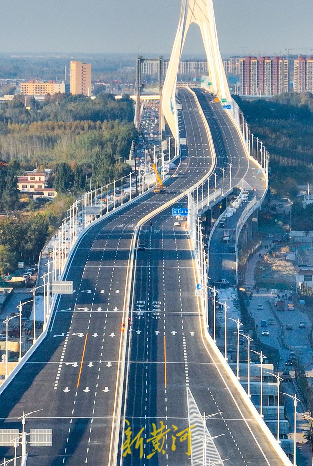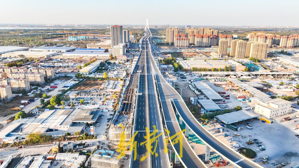 11月7日,在G104京岚线济南黄河公路大桥扩建工程现场,记者看到新建的零点立交桥南北主线桥浇筑后,二环东路高架与新建G104京岚线济南黄河公路大桥实现“牵手”,路面沥青铺设和路灯安装已经到位,双向六车道的高架路已经初具规模。