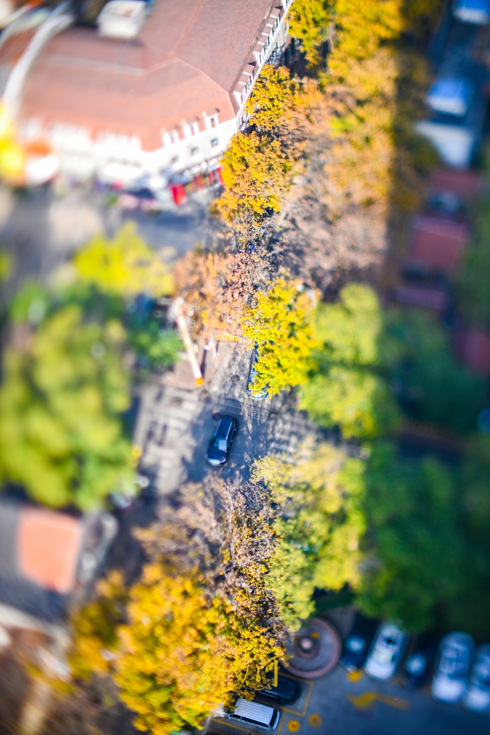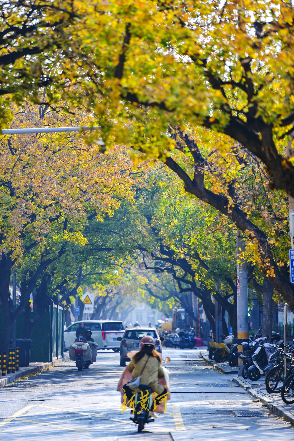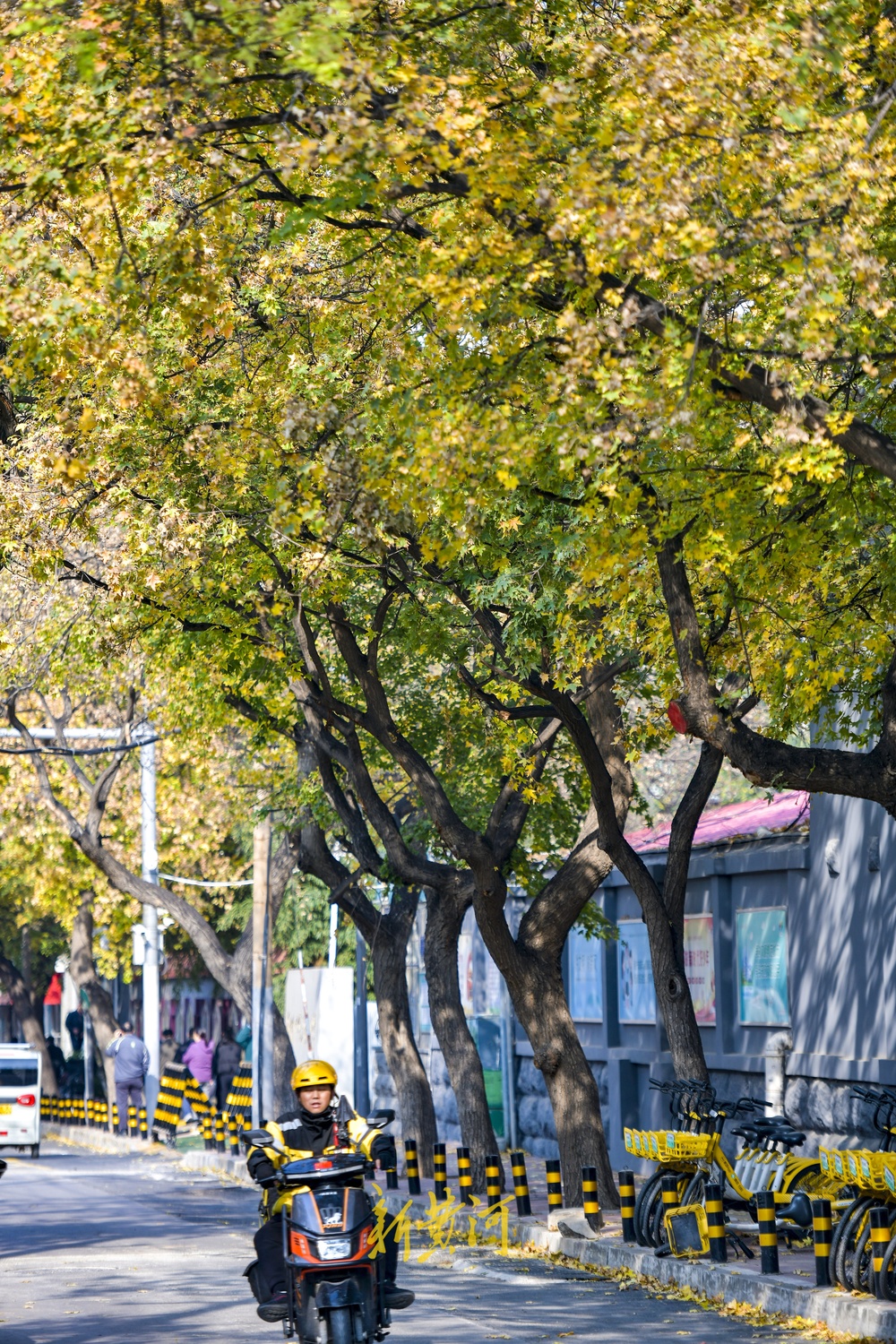 “网红”打卡点爱心路口所在的纬三路,也是枫树一条街,从经一路到经六路种植着上百棵枫树,初冬时节,枫叶逐渐变红或变黄,出现黄红绿色调层层叠加的景观。