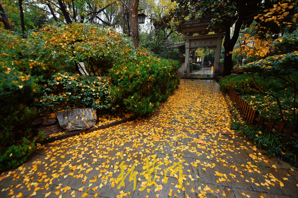 25日,泉城气温骤降,一场冬雨如约而至,未褪尽的金黄色树叶,被冬雨敲打而落,铺满地面,为城市带来了别样动人的景色。 在城市的道路上,在公园的大树旁……到处落满了各形各色的叶片,给大地铺上一层暖色的“地毯”,给萧瑟的初冬增添一份温暖的色彩。
