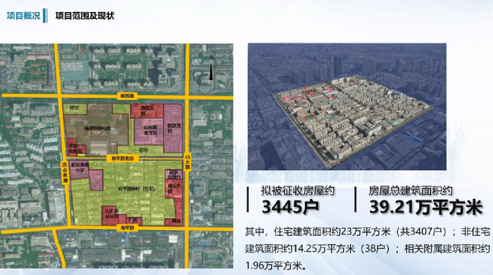 天桥区推介城市更新项目中,比较受关注的是柳行社区城中村项目。柳行城中村位于历山路以西、东关大街以北,距离大明湖只有1公里左右,距离地铁2号线历山路站数百米,处于老城核心区位,居民对改造的呼声比较高。该项目东至历山路,西至柳行小区,南至明湖东路,北至胶济铁路。占地约30公顷,建设内容包括住宅、商业及相关配套。目前已完成初步规划策划方案编制,已开展项目摸底调查,并完成项目土地熟化投入产业策划。
