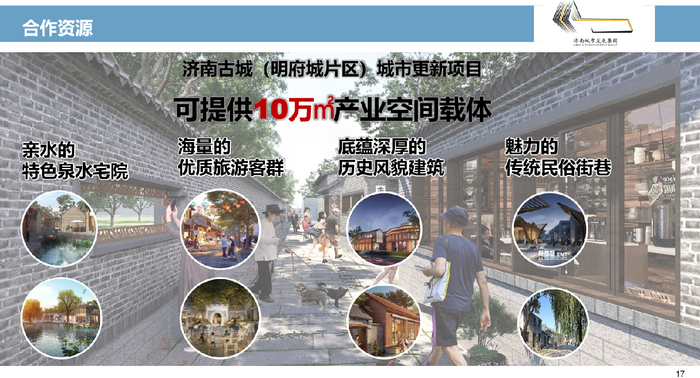 2024年10月1日,古城(明府城片区)城市更新项目首开院落及街巷正式运营。这次推介招商,古城(明府城片区)城市更新项目运营方合作资源可提供约10万平方米产业空间载体,以特色泉水宅院、传统民居和历史风貌建筑为主。芙蓉街—百花洲片区2025年可提供80余组院落。项目围绕“济南古城,天下泉城”的整体定位招引和落位优质品牌商家,结合泉水、街巷、院落、文化和产业五条主线,拟引入品质餐饮、艺术体验、精品零售、休闲娱乐、服务配套、文化复合和旅居等业态。