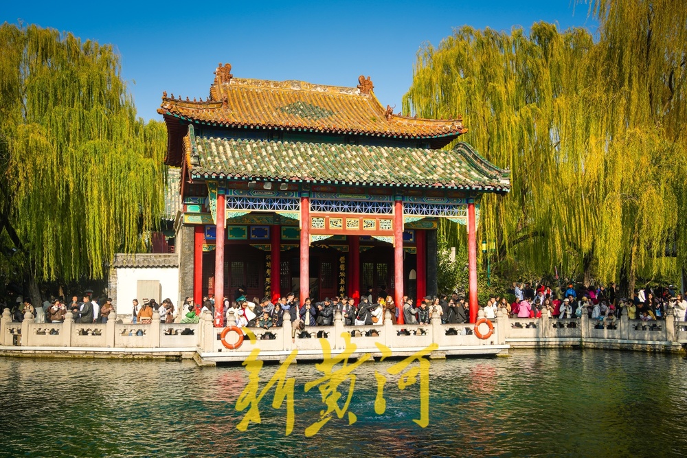 众多游人来到趵突泉畔,赏泉、观景、打卡拍照,乐享冬日暖阳。