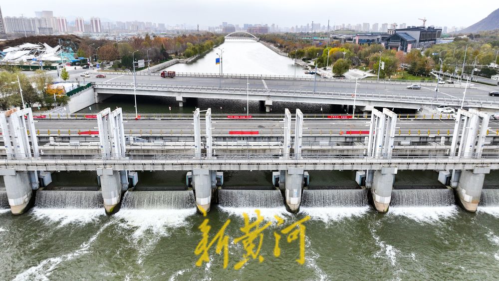据了解,洪园节制闸是小清河上集防洪、蓄水、景观、旅游等多功能于一体的水闸,整体设计为百年一遇的防洪标准,为小清河济南段最大的液压闸口,该闸共设七道闸门,每道闸门上预留出七个小孔,上游的水通过小孔倾泻下来,远远看去如同一道瀑布。