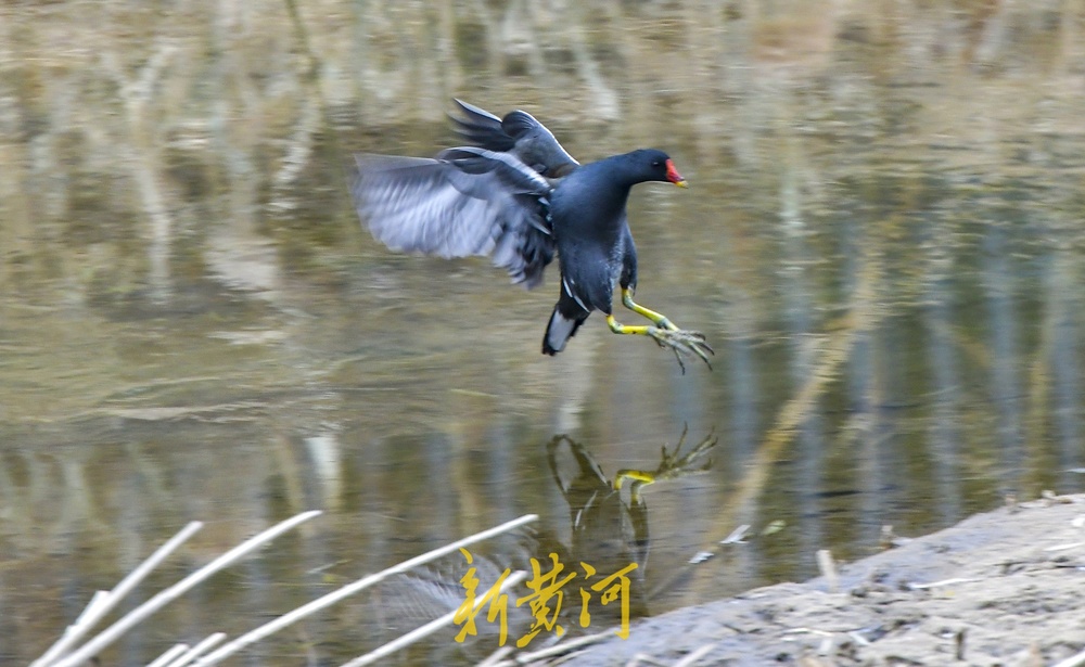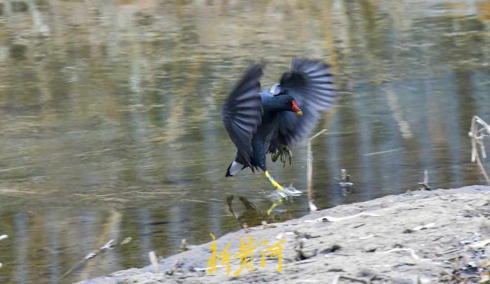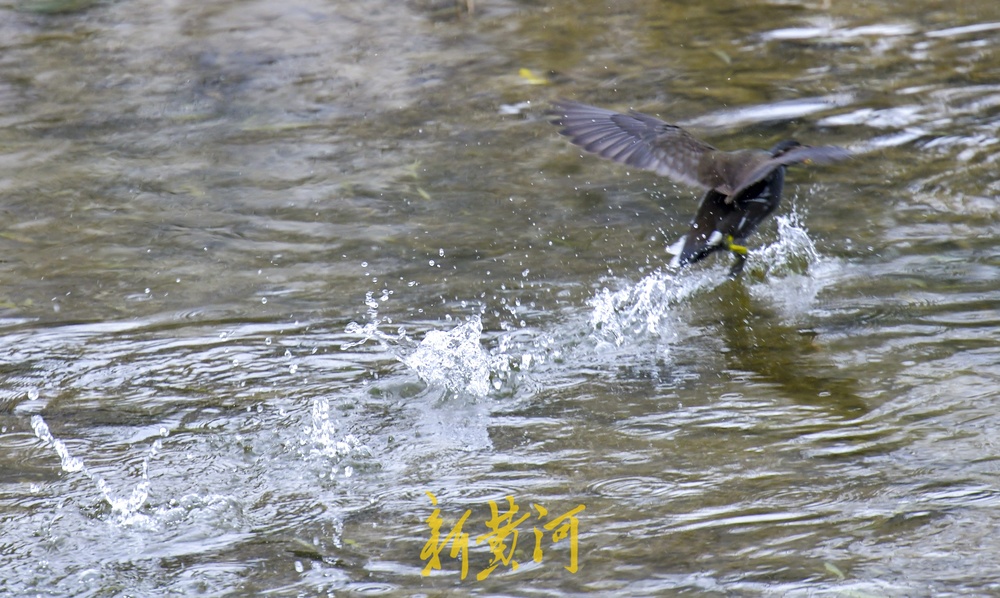 它们时而展翅踏水飞翔,为冬日的腊山河增添了几分生机。