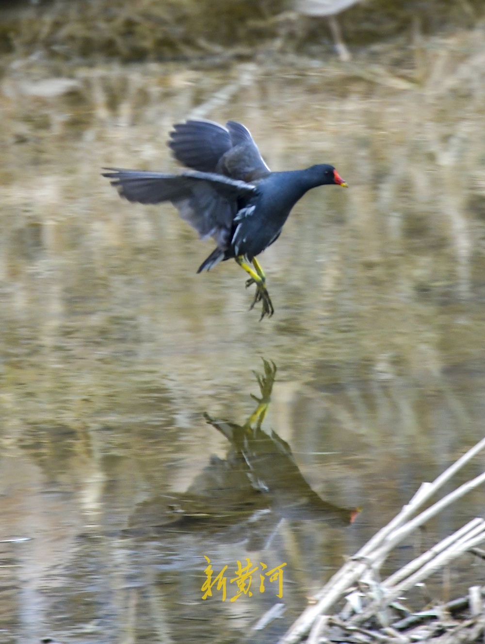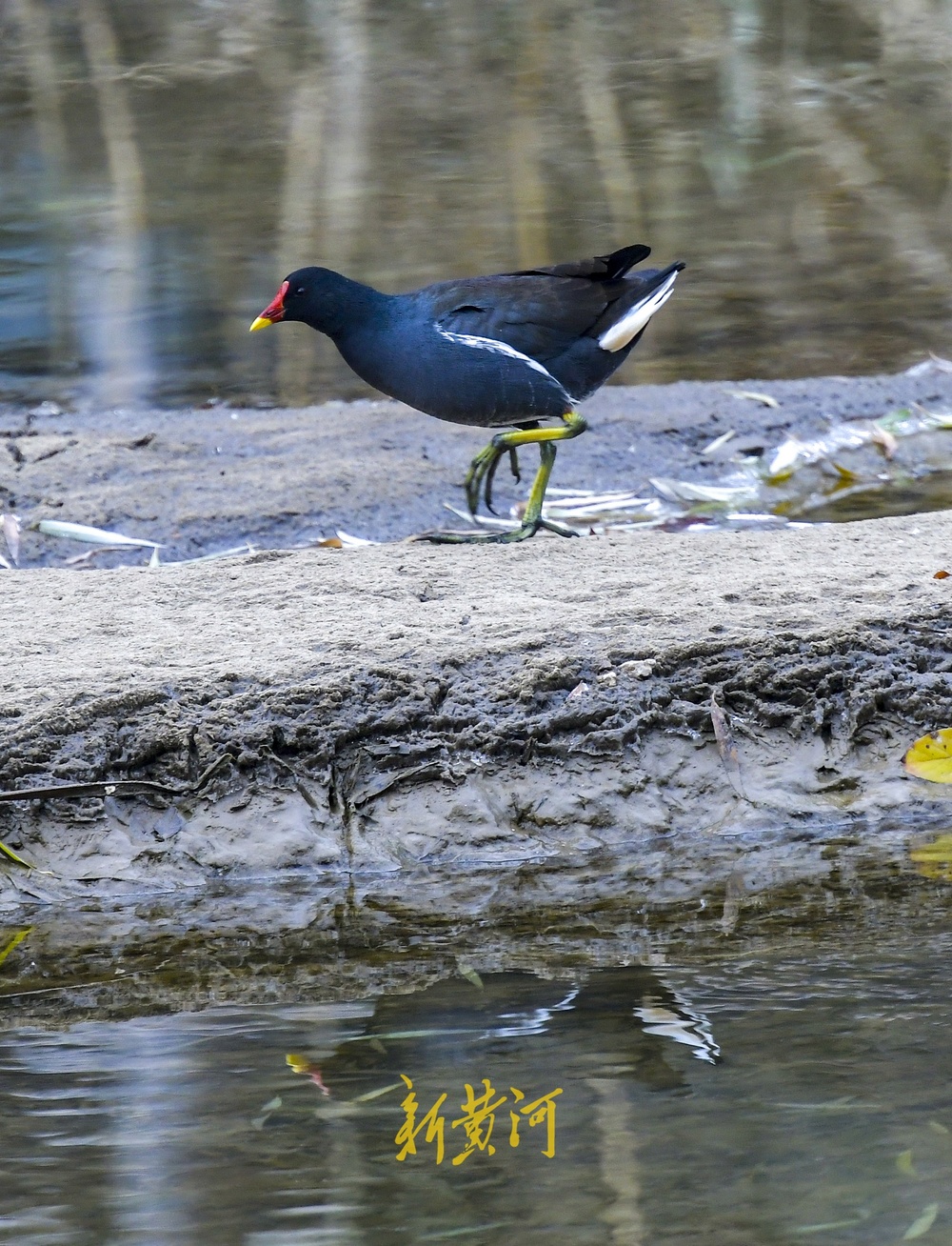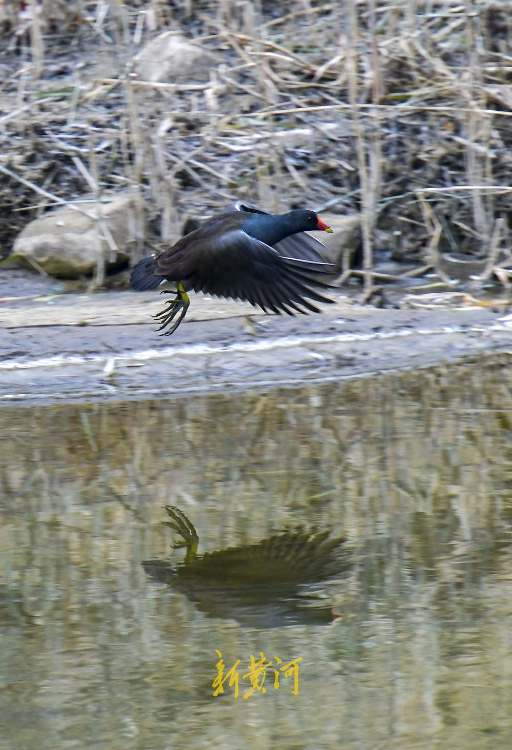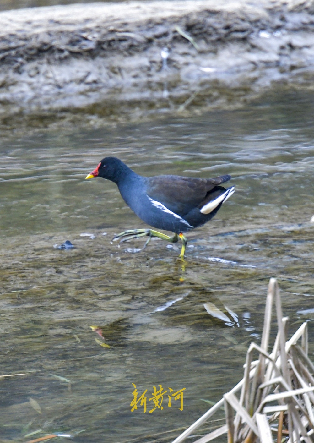12月24日,记者在济南槐荫区烟台路北侧的腊山河旁看到,水中珍禽黑水鸡正在河中悠闲地戏水、觅食。