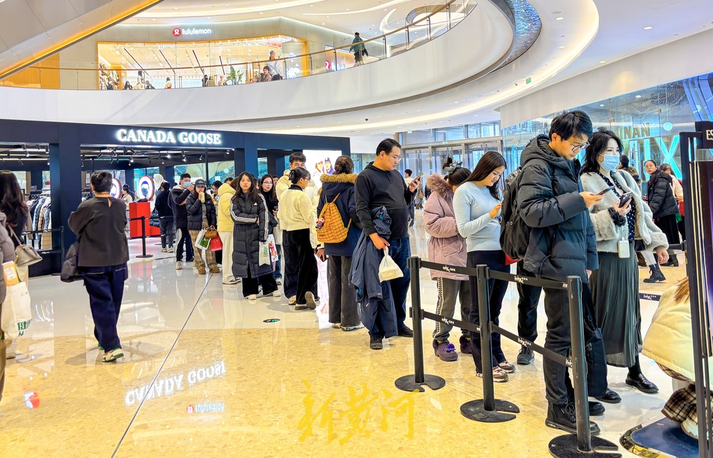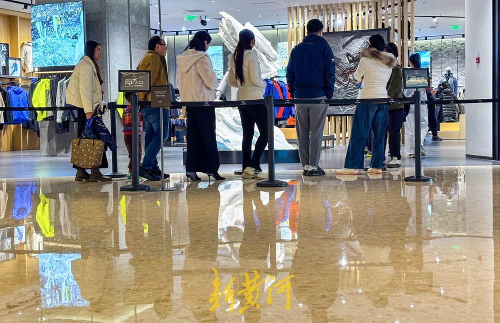 不少商铺门前消费者排起长队等候,商家推出限流措施,消费者需分时段、分批进入店内选购。