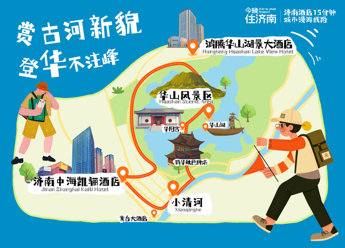 线路点位:济南中海凯骊酒店→小清河→华山风景区(鹊华秋色牌坊、华山湖、华阳宫、华不注峰)→济南中海凯骊酒店