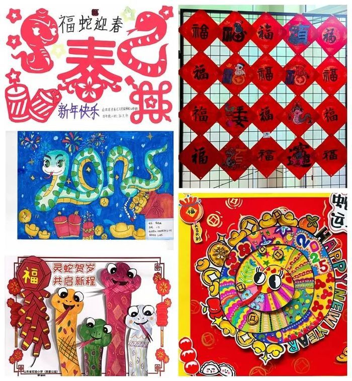 孩子们的各种主题创意作品,运用绘画、剪纸、手工、书法等形式展现蛇年文化魅力,用奇思妙想为蛇年文化“代言”。