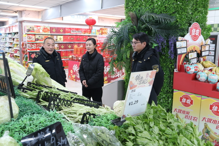 一是聚焦食品安全。加大对大型商超抽查力度,加强粮、油、肉、蛋、酒等春节旺销食品的检查频次,督促落实食品安全责任,检查进销货台账和食品添加剂使用情况,禁止销售“三无”产品、假冒伪劣等违法行为。二是守好安全底线。针对印象城等人员密集场所的特种设备加强安全检查,督促各使用单位压紧压实企业安全生产责任,完善各项安全管理制度,落实各项安全工作措施,维护人民群众生命财产安全。同时,对承办“年夜宴”的餐饮单位餐饮食材准备、执行进货查验、索证索票和食品留样等制度情况,场所环境卫生、餐饮具消毒等情况进行重点检查。在检查过程中,提醒、督促餐饮经营者切实落实食品安全主体责任,严格落实安全管理制度,及时发现和消除食品安全风险隐患;督促餐饮经营者张贴和设置“反对餐饮浪费”提示语,自觉守法诚信文明经营,为消费者提供安全、温馨的“团圆宴”。 三是筑牢价格防线。通过提醒告诫、宣传法律法规等方式,引导经营主体规范经营,要求经营主体明码标价,加强价格自律,维护肉、蛋、奶、油等民生商品市场价格秩序稳定。