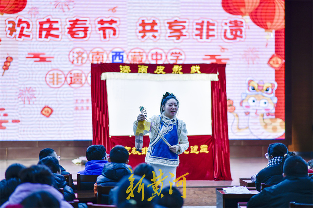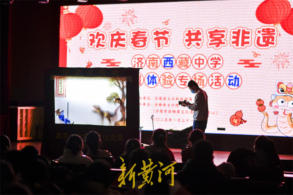 1月30日,济南市文化馆(济南市非物质文化遗产保护中心)开展的非遗体验活动迎来了一群特殊的客人,他们是来自济南西藏中学的汉藏师生。通过参观非遗展厅、观看非遗展演、体验非遗技艺等活动形式,让100余位师生沉浸式感受我市非遗的独特魅力。济南皮影戏省级非遗代表性传承人李娟现场演绎了《武松打虎》《西游记之大战蝎子精》《新编东郭先生与狼》等经典剧目,邀请同学们登台体验了影人的操作技巧,增进了大家对非遗的认识。