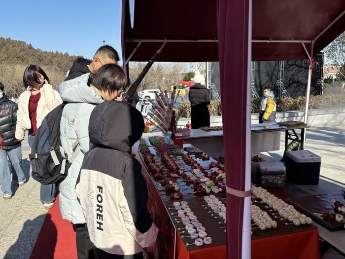 大年初四,集市现场,商家们忙得不亦乐乎,市民们买得热火朝天,现场洋溢着浓浓的年味和幸福感。各类特色商品琳琅满目,从传统手工艺品到创意文创产品,从老字号到特色小吃,令人目不暇接。各种小吃摊位前都围满了人群,甜丝丝的棉花糖、酸中带甜的糖葫芦、清香软糯的桂花糕,成为游客购买的热点,无论大人还是小朋友,都被这甜蜜的味道深深吸引,纷纷驻足品尝。