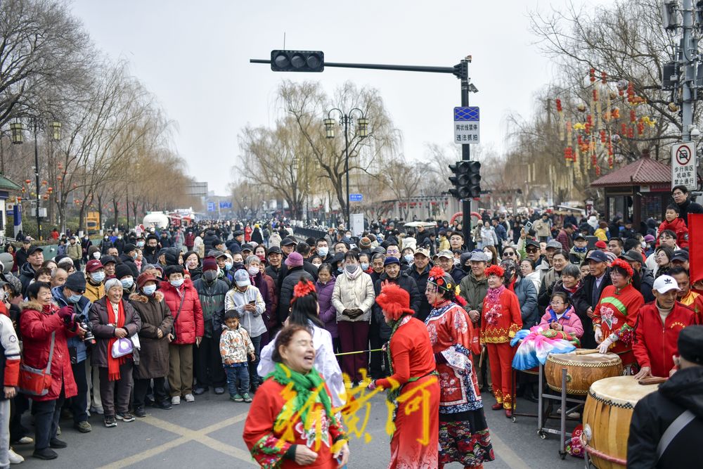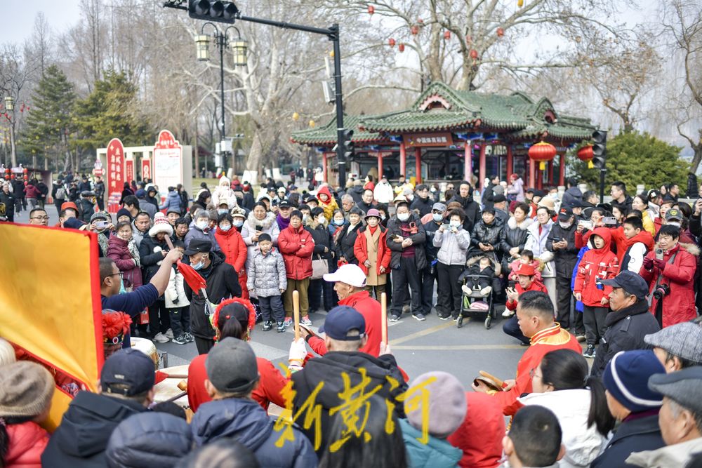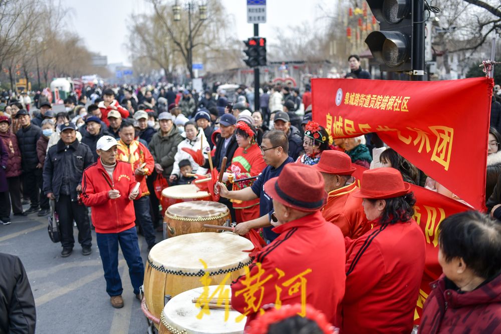 新春佳节期间,济南明湖市集热闹开市,为泉城增添了一抹亮丽的色彩。这里不仅有丰富的非遗文创展示,还有各类小吃美食,成为新春假期旅游新热点。由泉城路街道贡院墙根社区居民组成的艺术团也来到市集,敲锣打鼓表演秧歌舞蹈,为市民和游客送去新春的祝福,为明湖市集增添一份欢乐。