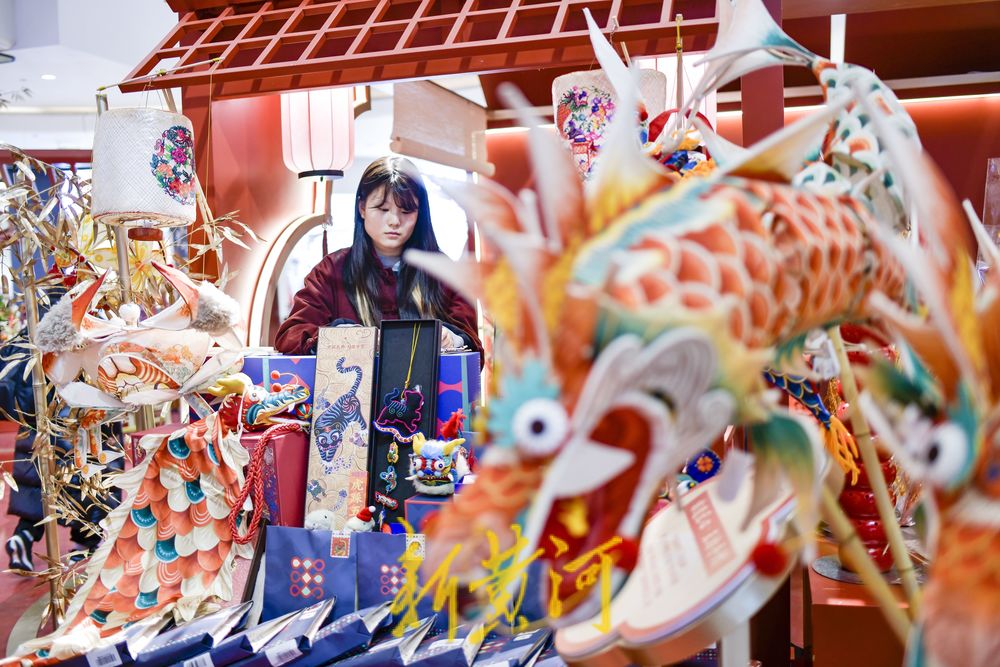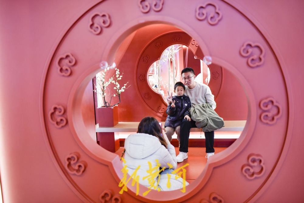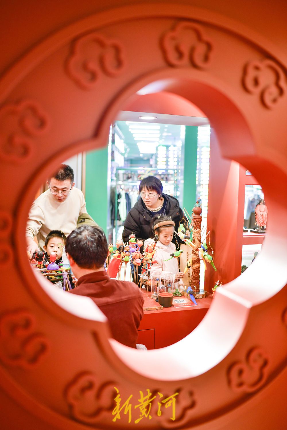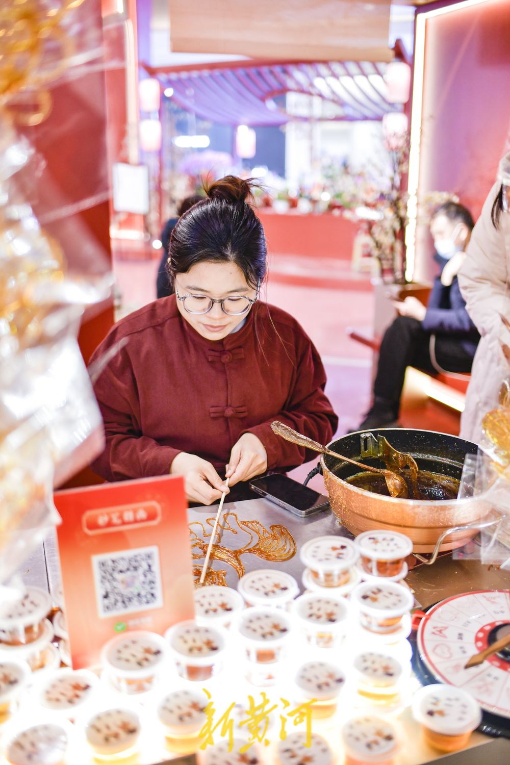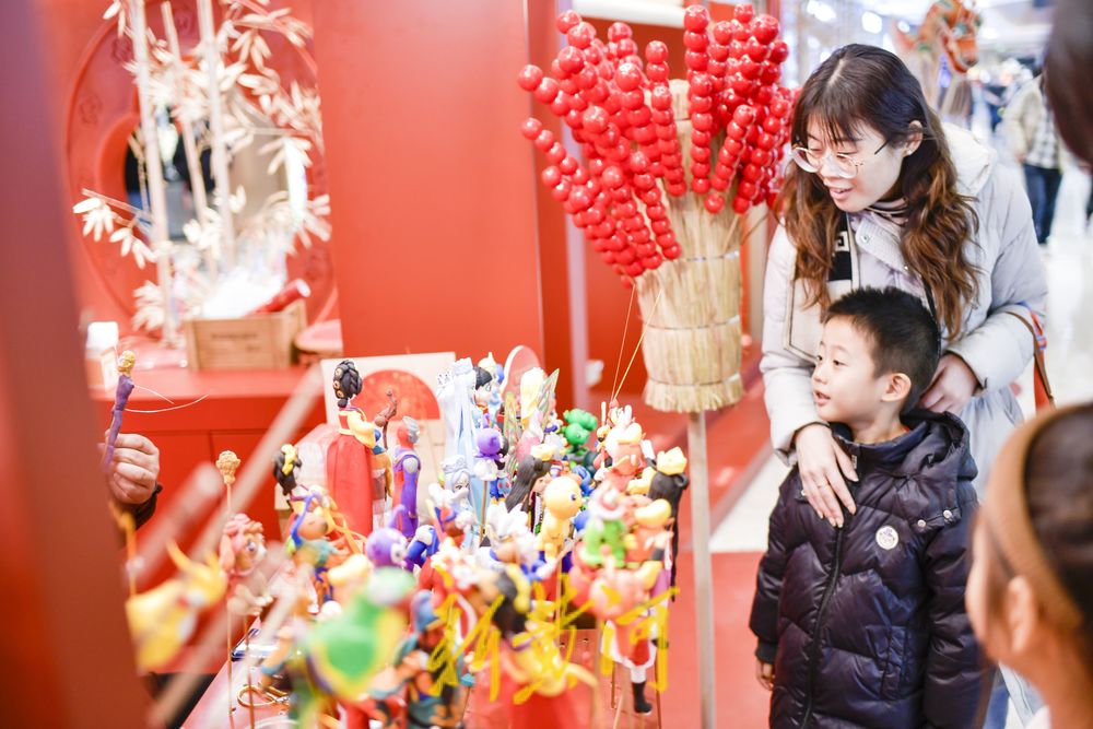 2月1日,在经十路一家商场内,举办了国风复古主题的市集,现场设置成古风浓郁的仿古街区,汇聚了糖画、面塑、剪纸、拉洋片的四大传统非遗民俗,市民可以体验拓年画、画糖画等民俗互动活动,在购物和体验互动中寻找传统文化,感受喜庆祥和的“氛围感”。