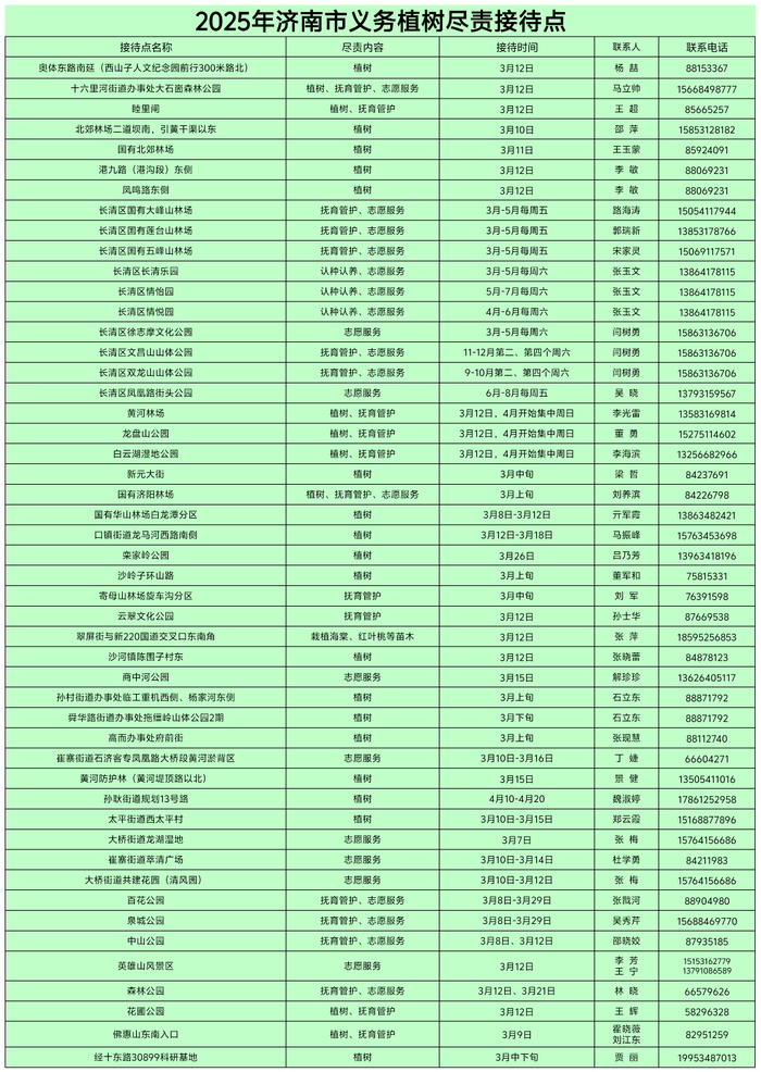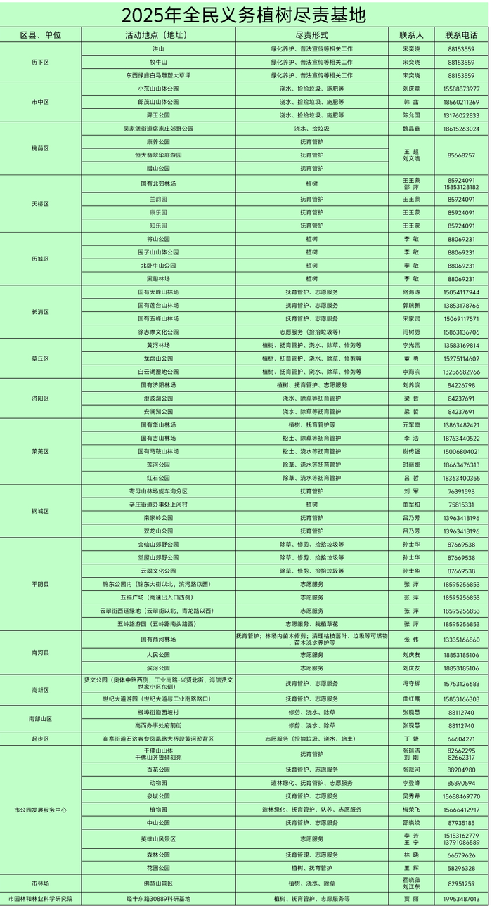 想全年为建设美丽泉城出力?没问题!63处尽责基地开放树木抚育、志愿服务等多样活动,四季皆可“打卡”绿色行动!