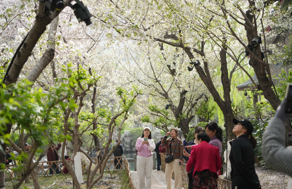 位于济南高新区的济南国际鲜花港内,樱花、玉兰、海棠相继绽放,吸引了大批游客前来观赏。不少游客还选择在此露营,享受春日的美好时光。