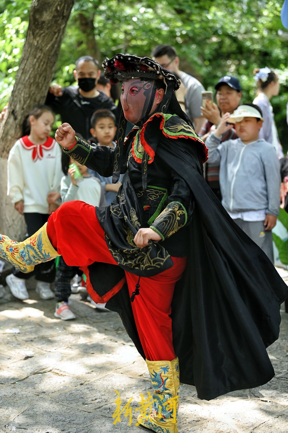 20日,泉城气温升高,泉水游也逐渐火爆,在五龙潭景区里,川剧“变脸”表演吸引了众多游客驻足观看,表演者配合各种舞蹈动作,一把折扇,一个回头,手一遮,眼一眨,在不到一秒钟的时间里,一个变脸动作便瞬间完成,让现场观众大饱眼福,掌声不断。