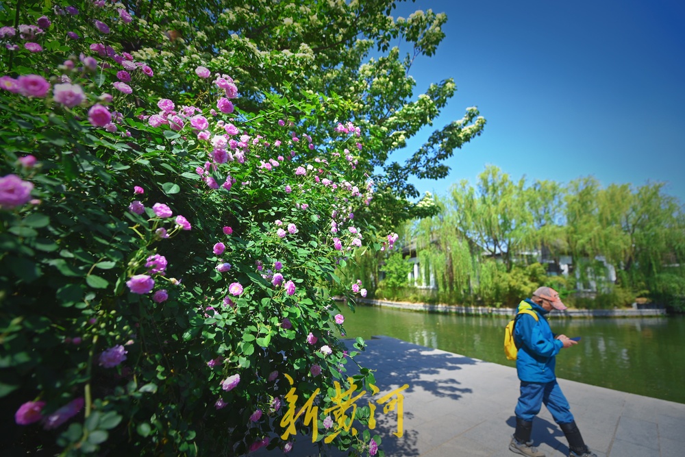 25日,济南大明湖畔蔷薇花花开正盛,或倚岸而生,或傍水而长,形成了一片片美丽的花海。