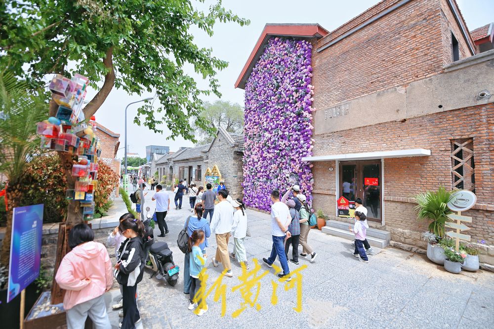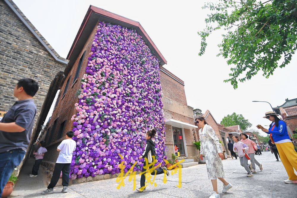 在网红花瀑前,游客市民争相拍照留念,感受老街的历史韵味与现代活力。