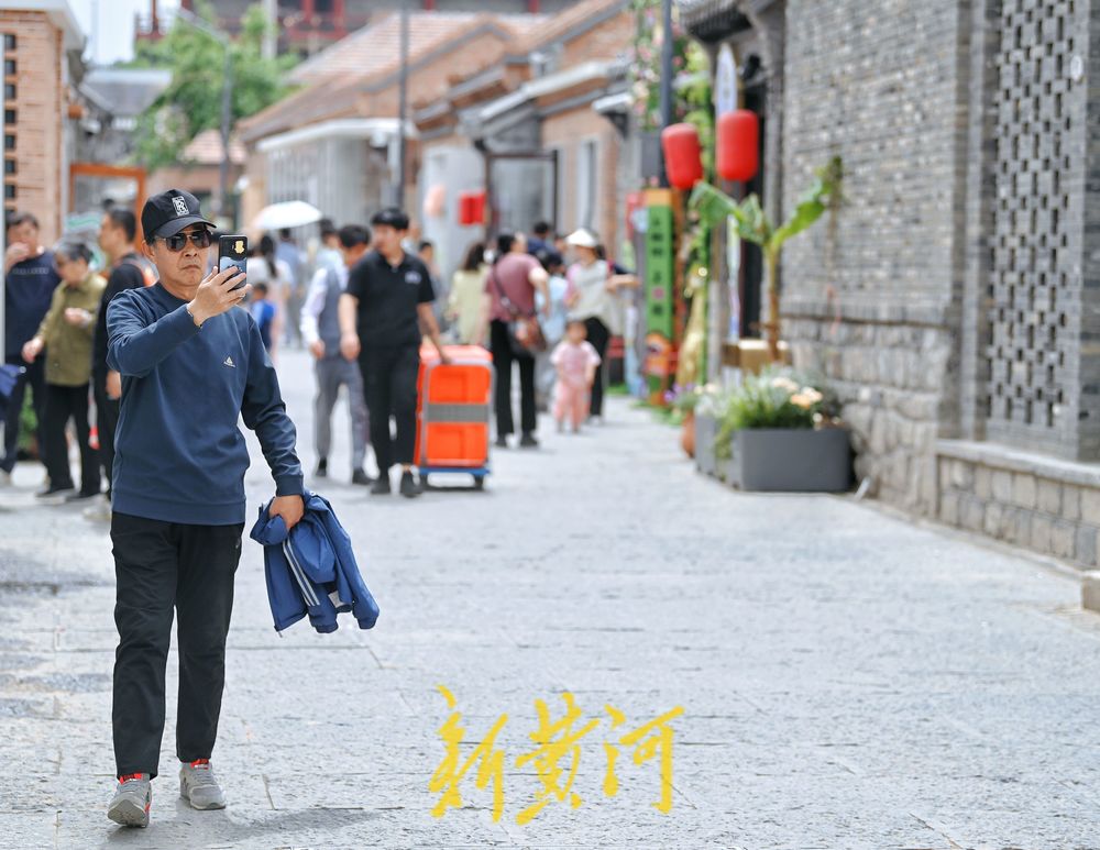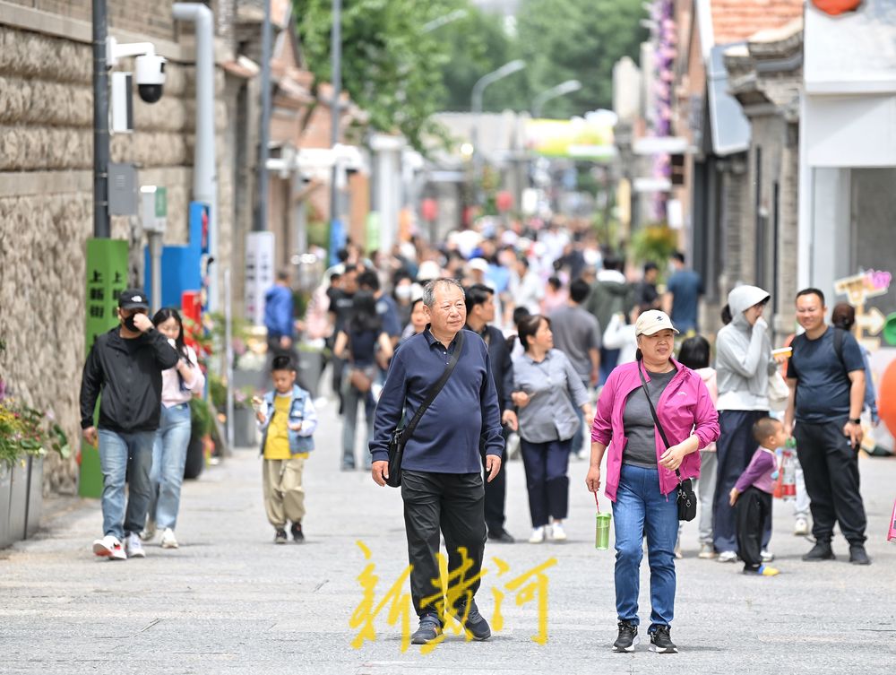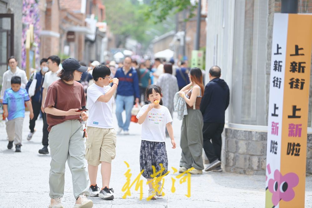 5月5日,五一小长假最后一天,济南上新街旅游热潮不减,不少游客抓住假期的尾巴,享受休闲时光。