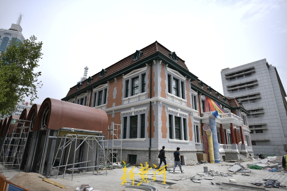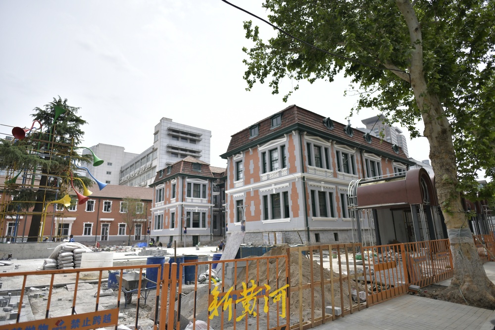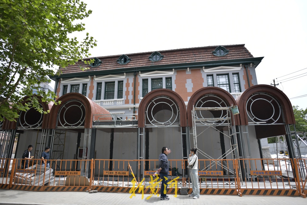 老建筑南北两侧铺装了石板,设置成休闲小广场,下一步南侧和西侧的围挡全部拆除后,将打造成开放式休闲空间向市民开放。