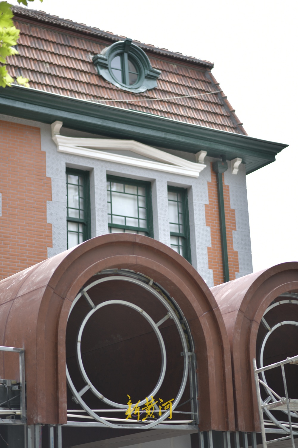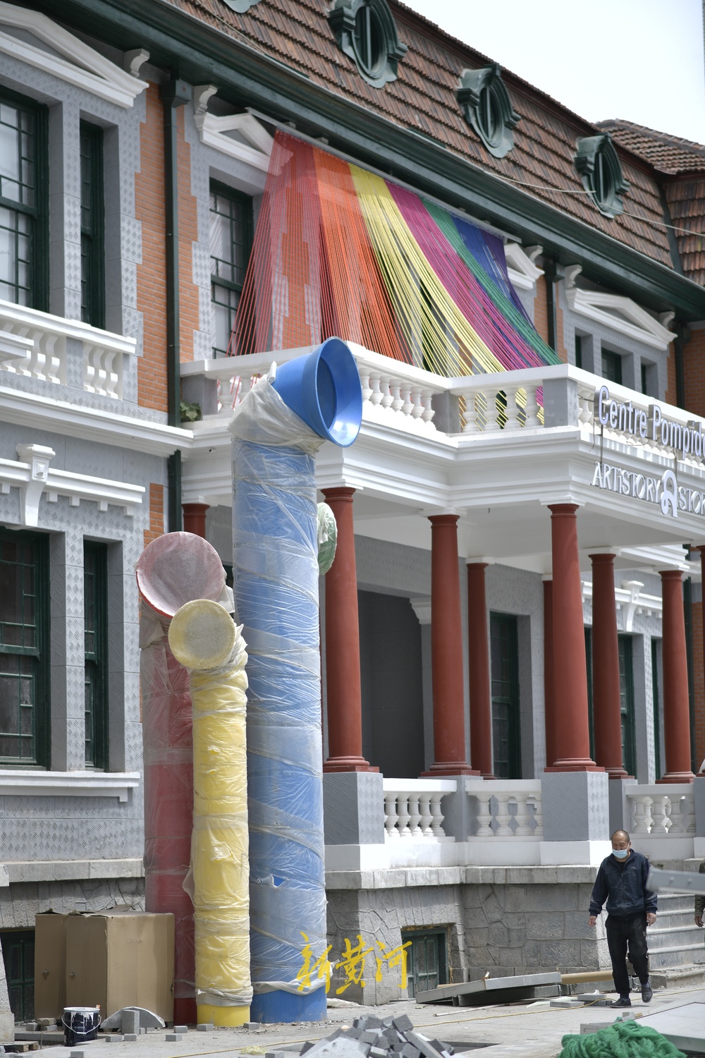 5月7日,记者在济南经四路与小纬二路交叉口东北侧的英美烟草公司旧址看到,设置在四周的施工围挡开始拆除,老建筑外墙部分装饰物已经安装到位,并在南侧入口处上方安装了“蓬皮社中心 艺述事博物集”的招牌。