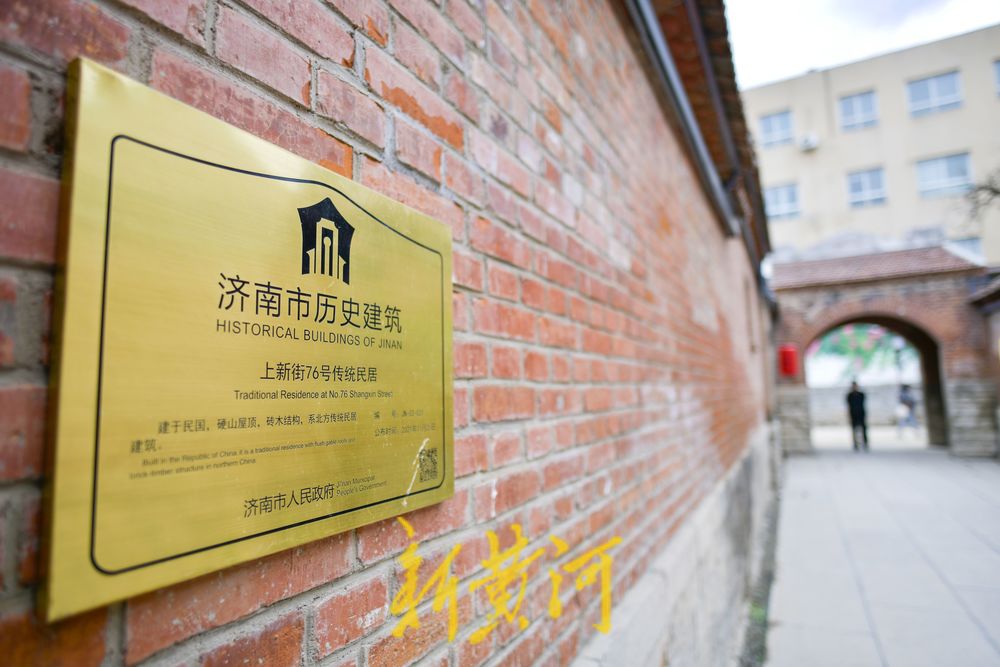 5月9日,在百年老街上新街,随着老建筑修缮的进展,越来越多的院落向市民开放,昔日隐藏在街巷深处的文物保护建筑也露出全貌,并悬挂上新的历史建筑普查和济南历史建筑铜牌,同时还对部分历史遗迹进行保护和展示。